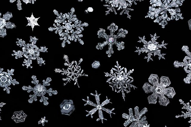 Os Flocos de Neve ou Cristais de Gelo de verdade, chamados em inglês de Snowflakes possuem formatos geométricos curiosos com simetrias radiais (ou seja, é como se fosse um círculo todo recortado).